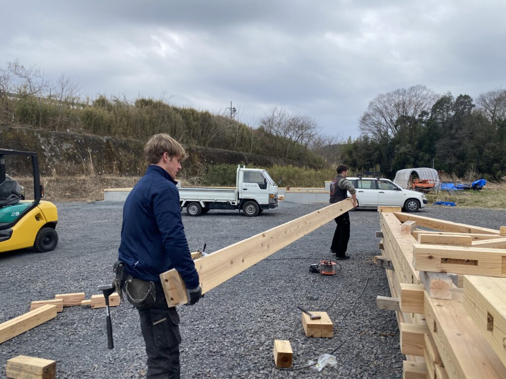 なんと!今、前長にドイツのチィマーマン(大工)が研修にきています。
